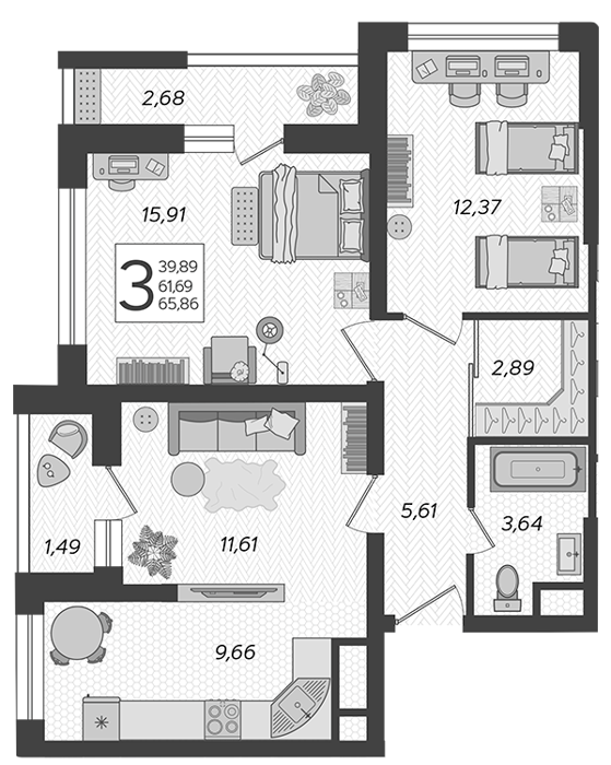 Планировки от 18 до 68 м² подойдут и тем, кто ищет уютную квартиру, и тем, кто рассматривает инвестиции в недвижимость. Район востребован, море рядом, инфраструктура продумана. Арендный доход в среднем 70 000₽ в месяц.