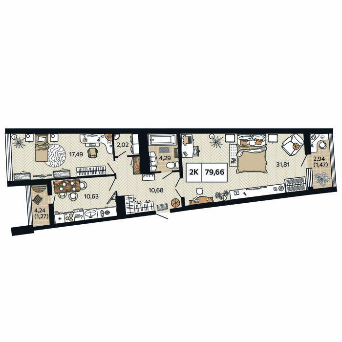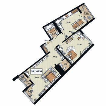 Площадь от 69 м2