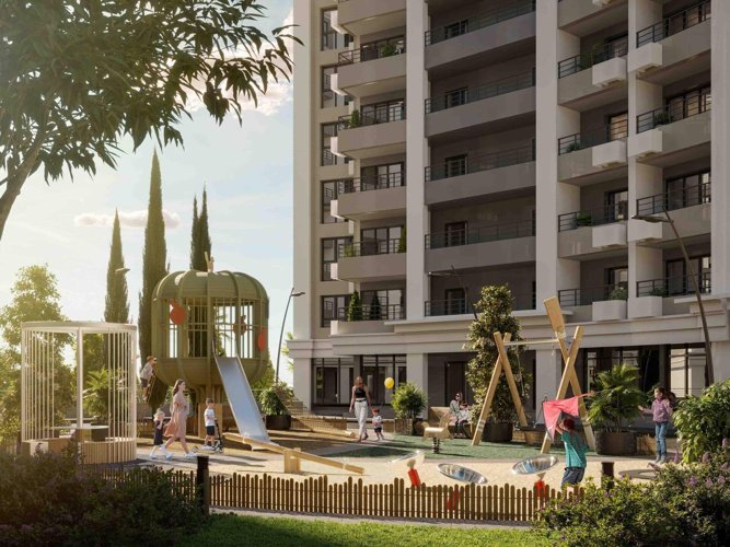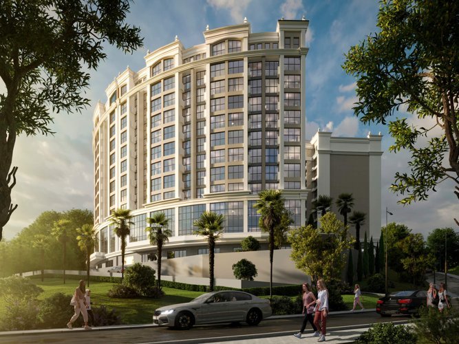 Фасады домов отделаны благородным натуральным камнем, который летом сохраняет прохладу, а зимой удерживает тепло. Витражные окна из закаленного стекла отражают синеву неба и золотистое солнце, обеспечивая квартиры естественным светом и живописными видами на море и горы.